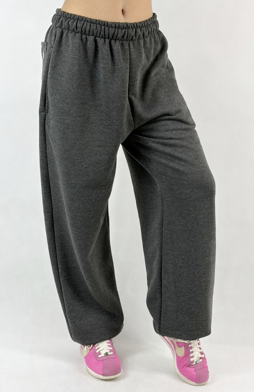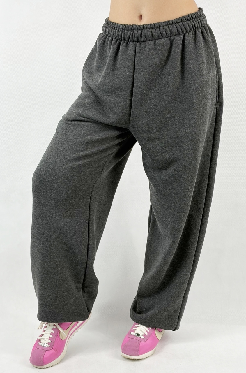 Nasze grafit- melanż spodnie dresowe z szerokimi nogawkami typu baggy spełniają teoczekiwania. Wykonane z miękkiej, przyjemnej w dotyku bawełnianejdzianiny typu "PĘTELKA", zapewniają swobodę ruchów i komfort przez cały dzień.